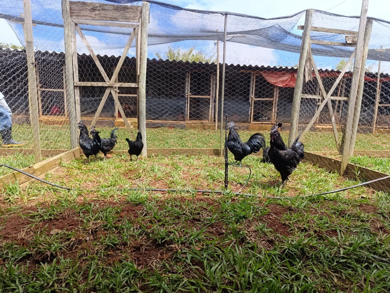 A baia destinada à criação da Ayam Cemani é preparada para garantir conforto, segurança e bem-estar às aves. Esse cuidado é essencial para manter a saúde da raça e preservar suas características únicas.